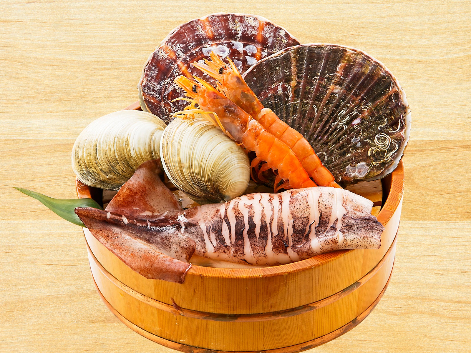 海辺の磯料理屋の楽しさを、駅前で気軽に体験できる海鮮居酒屋です。水槽から引き揚げたばかりの活貝や、一番人気の蟹味噌甲羅焼を目の前で焼きながら楽しめます。新鮮なお刺身や一品料理もご用意しております。ランチも充実した女性のお客様にも人気のお店です!デリバリー・テイクアウトサービスも実施しております。通販サイトで蟹味噌甲羅焼などを販売中‼