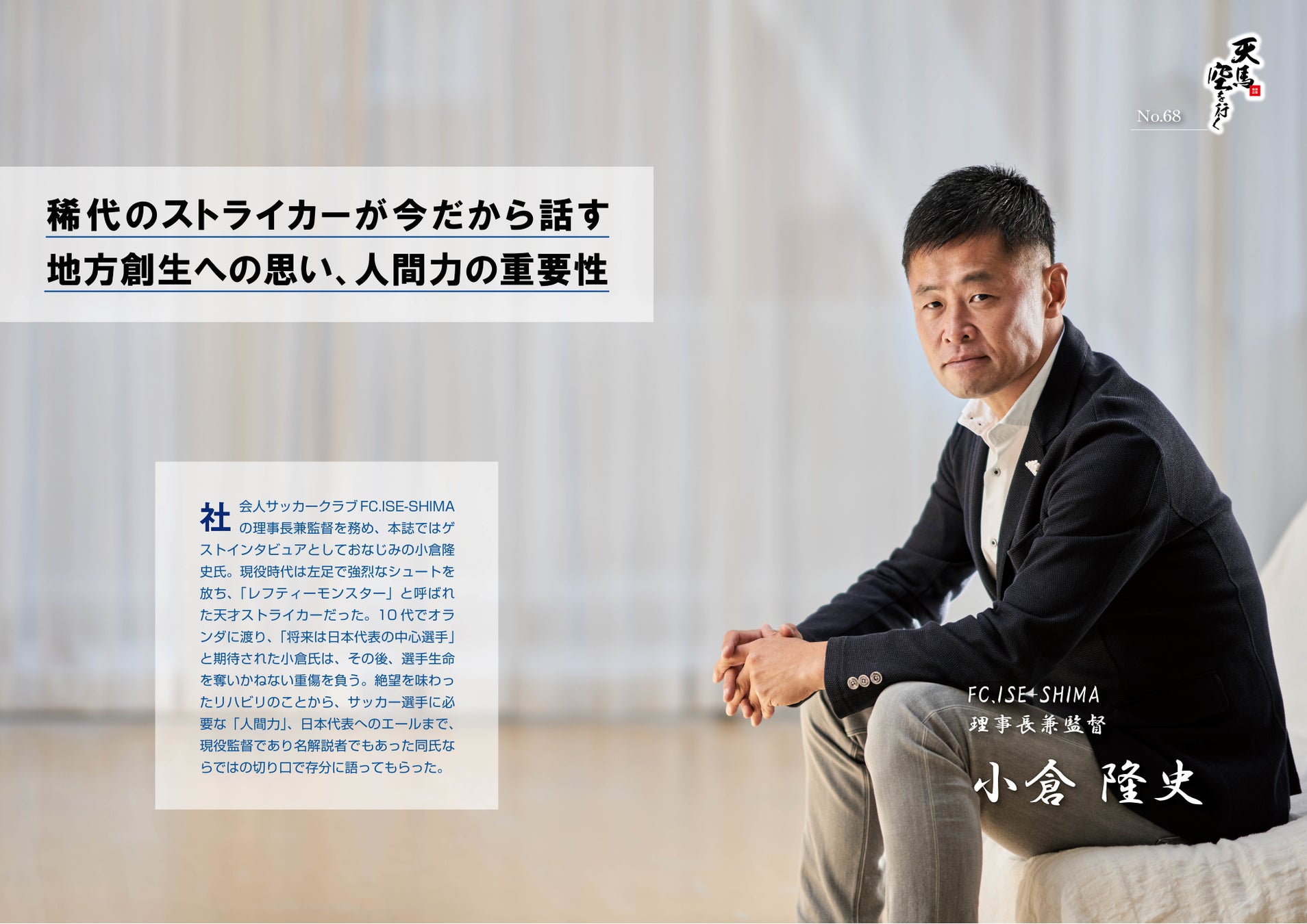 一歩を踏み出したい人へ――挑戦する経営者の声を届けるビジネス情報誌「躍進企業応援マガジン COMPANYTANK(カンパニータンク)」2022年3月号を3月1日(火)に発売する。今回はFC.ISE-SHIMA 理事長兼監督 小倉隆史さんが表紙を飾り、8ページにわたる巻頭特集企画「天馬空を行く」にロングインタビューを掲載します。