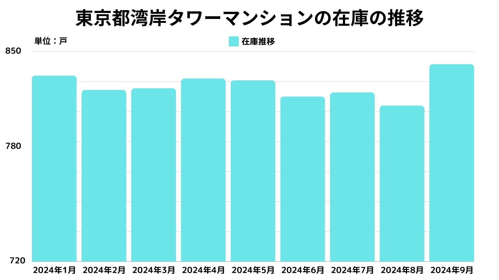下記のグラフは東京都湾岸タワーマンションの在庫推移を示しています。