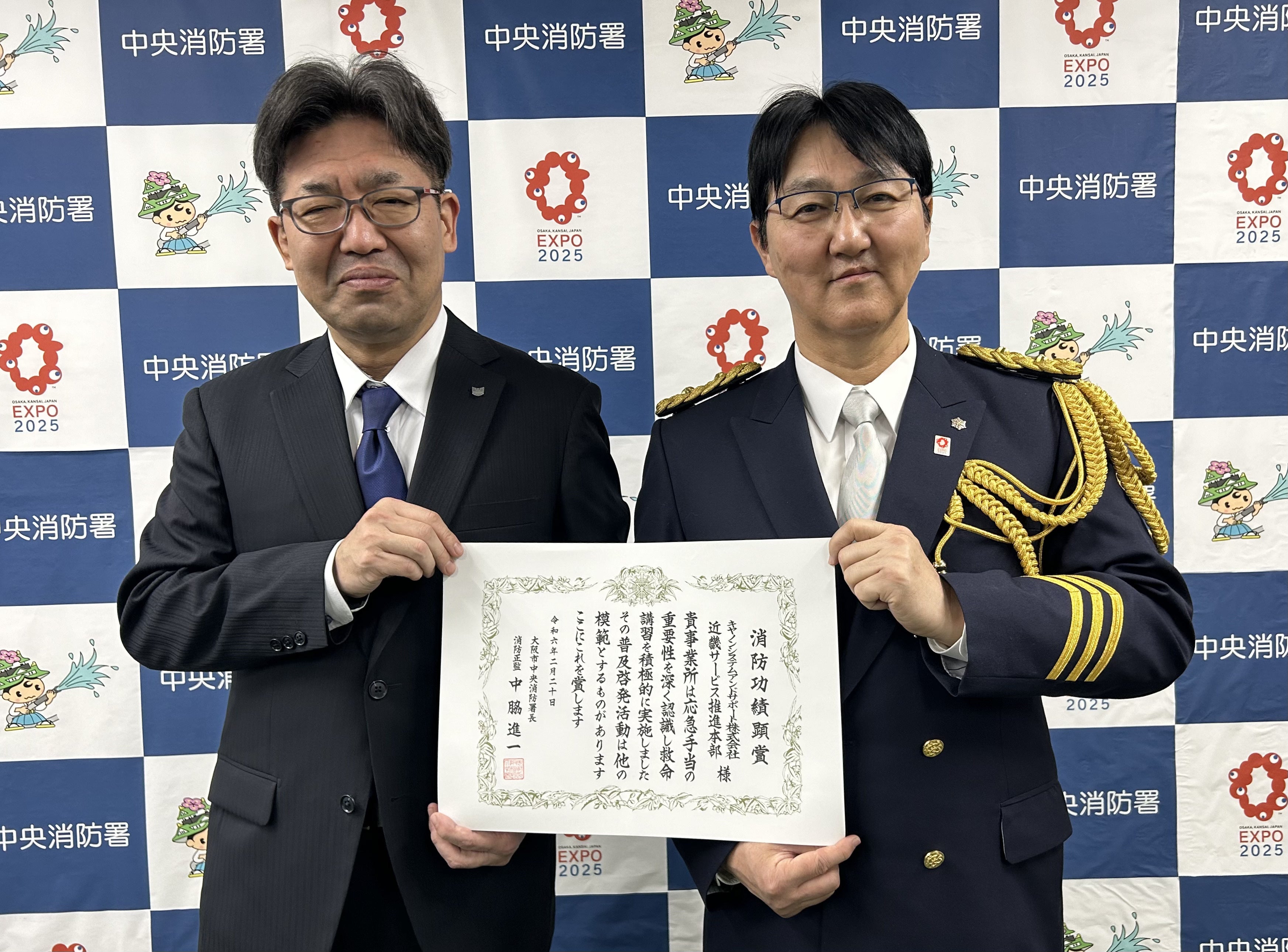 左から、キヤノンS&S 近畿サービス推進本部 田村、中脇大阪市中央消防署長