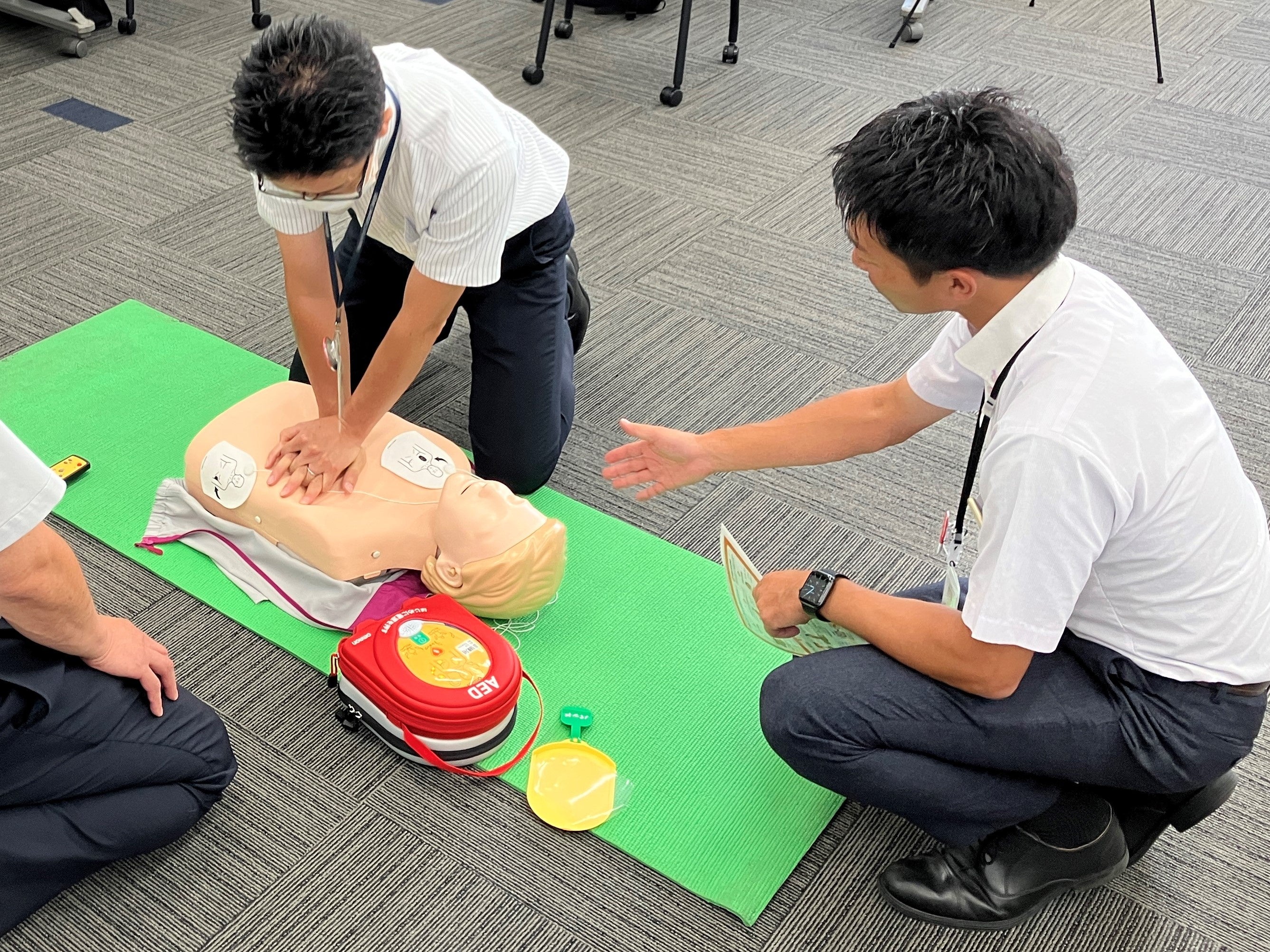 正しい知識と目の前の命を救う「一歩踏み出す勇気」を持てるよう、約400名の社内認定インストラクターがCPR講習をお客さまやビジネスパートナー、当社社員に実施しており、これまでに23万人を超える方々に受講いただきました。現在30万人の受講者達成を目指して活動を進めています。