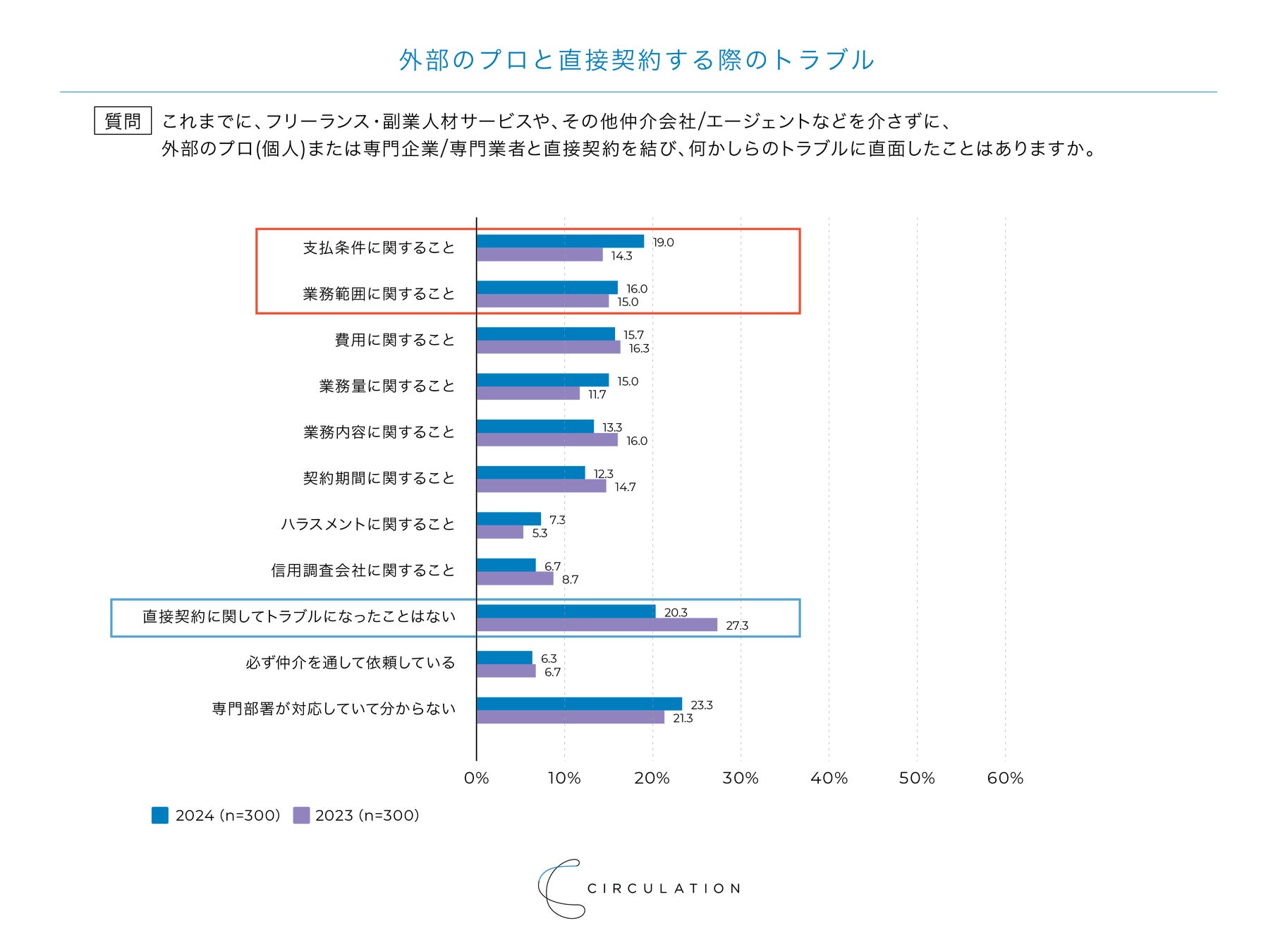 一方で、「直接契約に関して、トラブルになったことはない(2024年:20.3%) 」は7ポイント減少しており、直接契約でのトラブルが増えている可能性も考えられます。