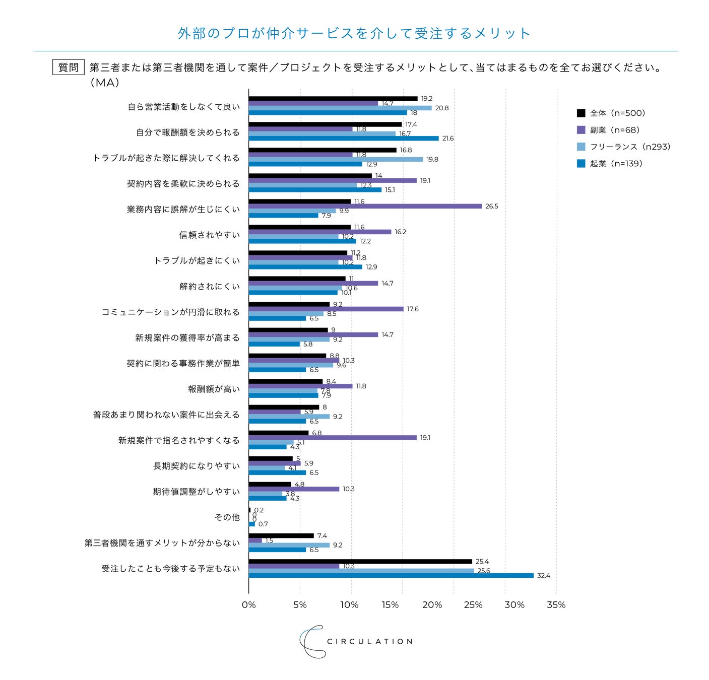 27,000名以上のプロの経験・知見を複数の企業でシェアし、経営課題を解決するプロシェアリング事業を運営する株式会社サーキュレーション(所在地:東京都渋谷区、代表取締役社長:福田 悠、以下サーキュレーション)は、外部のプロを活用した経験のある企業担当者300名に対して「法人のプロ人材活用実態調査」、外部のプロとしてフリーランス・副業・起業で働く500名に対して「プロ人材実態調査」を行いました。