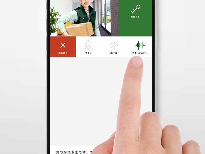 ボイスチェンジャー機能を搭載。ボイスチェンジされることで、居住者へより高いプライバシー性を叶えます。特に女性の単身世帯など、防犯・プライバシーを重視する方にご利用いただける機能です。さらに、インターホンの呼び出しに応対するアカウントを設定できるため、ファミリー物件等において、応対者を父親だけに限定するという使い方も可能で、安全・安心にご利用いただける機能を備えています。