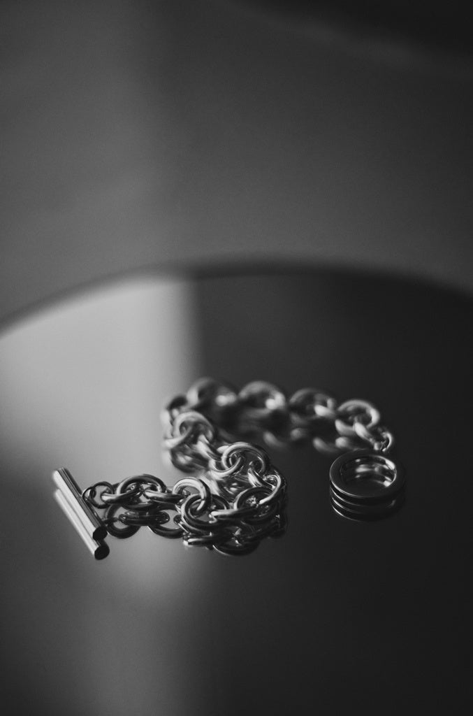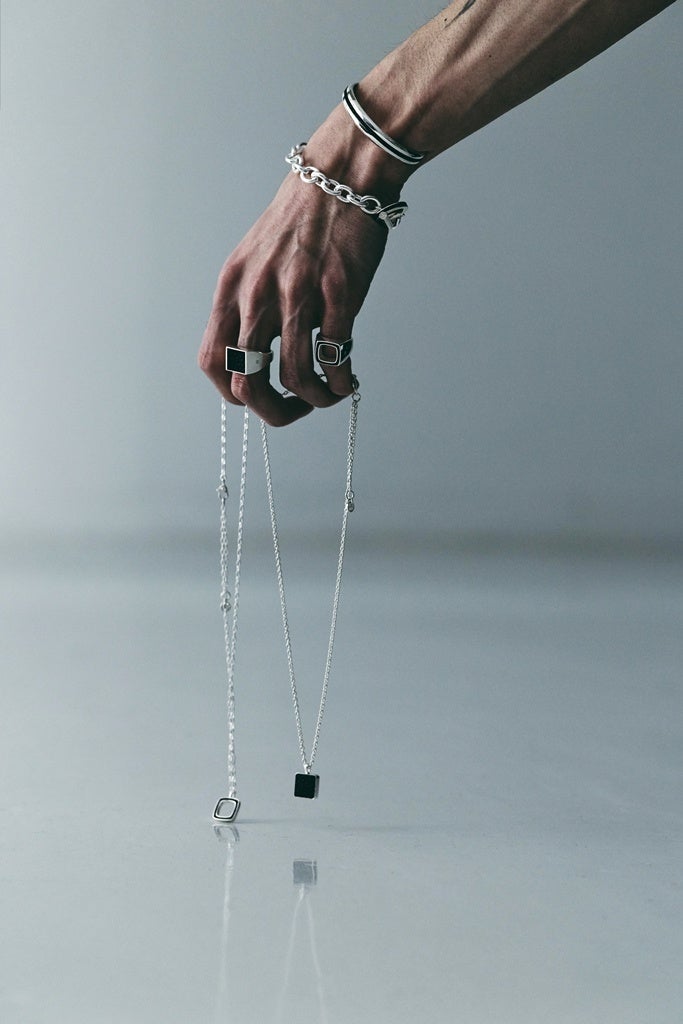 シルバー950を使用した上質なジュエリーライン。デビューシーズンは白い光沢が特徴的なシルバー950素材に、黒桟革(くろざんかく)という日本の伝統技術が詰まった皮を組み合わせることで、静と動を思わせるコントラストなデザインを提案します。