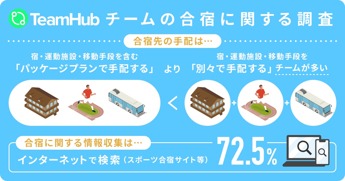 ・合宿先を手配する際は、パッケージプラン(宿・運動施設・移動手段を含む)で手配するより、「宿・運動施設・移動手段を別々で手配する」チームが多い