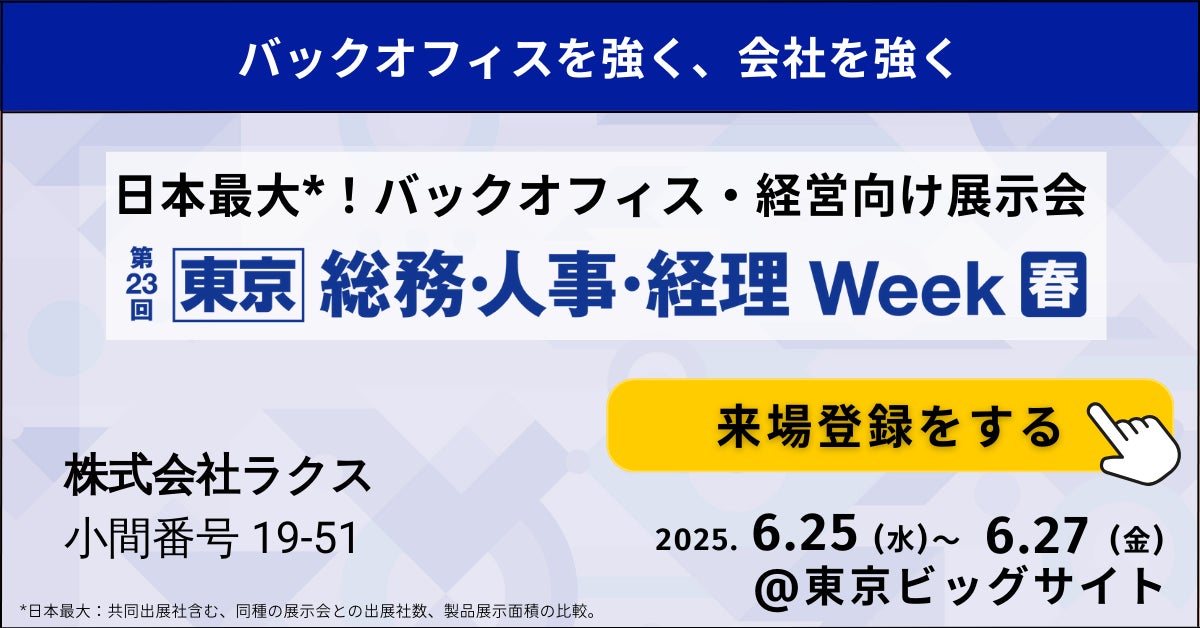株式会社ラクス(本社:東京都渋谷区、代表取締役:中村 崇則)が提供する問い合わせ管理システム「メールディーラー」は、2025年6月25日(水)~27(金)に東京ビッグサイトで開催される「第23回 総務・人事・経理 Week」に出展いたします。