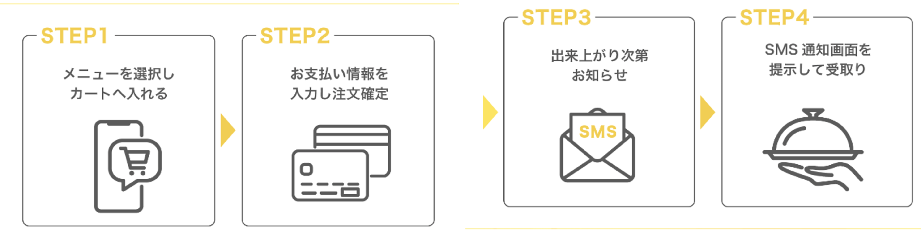 店頭でスタッフにSMS通知画面を提示し、その場で料理を受け取ります。