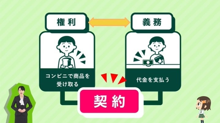 契約は申込と承諾という互いの意思表示の合致により成立する点や、契約が成立すると互いに権利と義務が発生し、どちらか一方の都合でやめることはできない点について説明いたします。その他、特定の取引においては、クーリング・オフ制度を使い契約をやめることができる点について解説いたします。