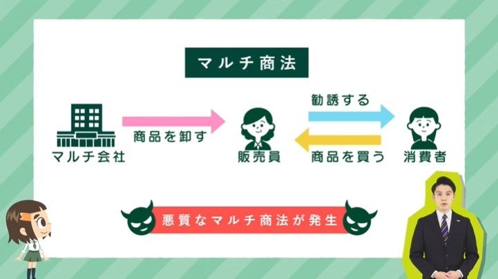 消費者被害の未然防止につながるよう、悪質商法や多重債務、インターネットを通じた消費者被害など具体的な事例を通じて、財・サービスを購入する際の意思決定を行う重要性について理解します。