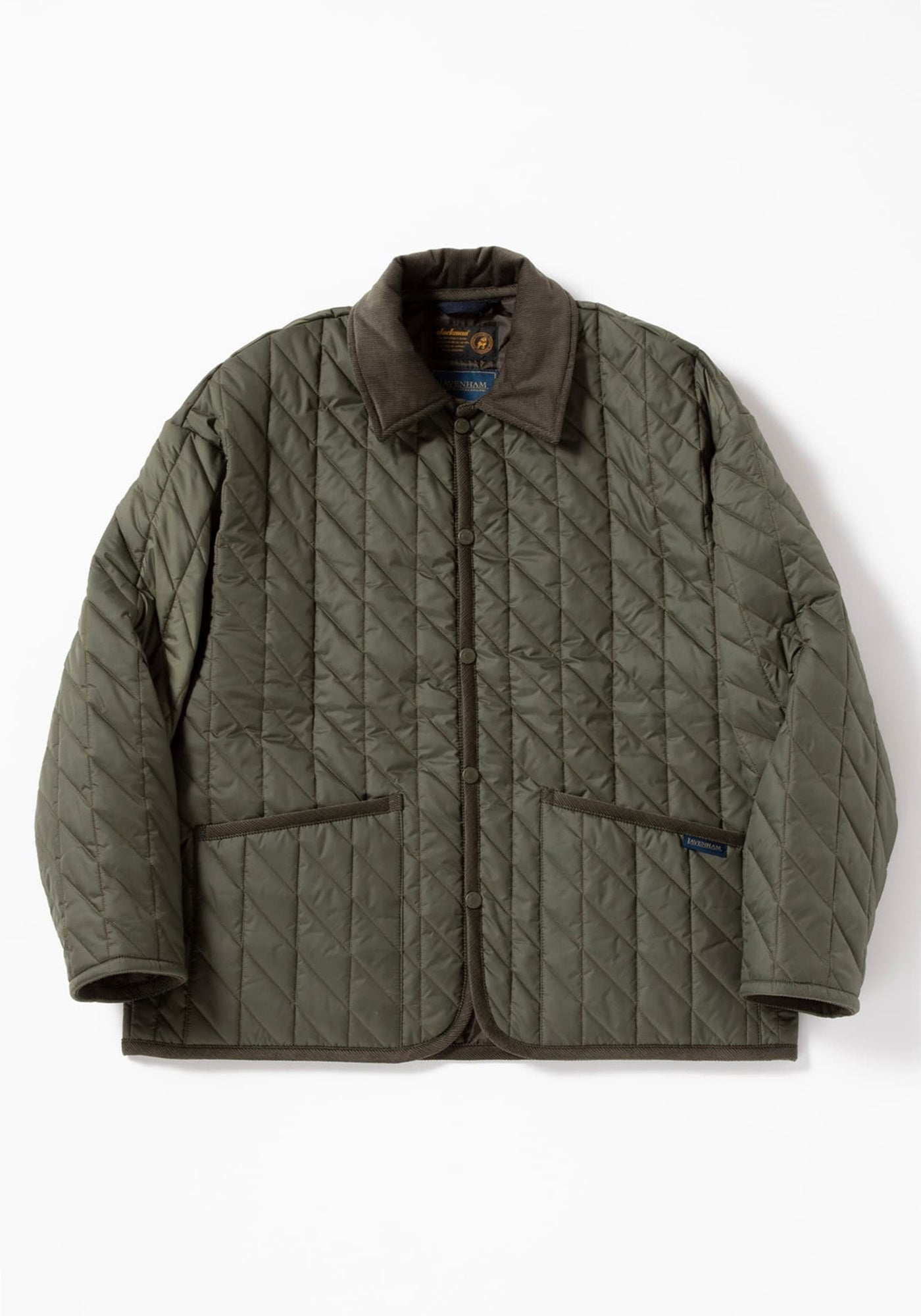 LAVENHAM(ラベンハム)は、1969年にロンドン北東部サフォーク州の小さな美しい村、LAVENHAMで創設。エリザベス女王に仕える女官だったMrs. Elliot(ミセス・エリオット)が、女王が乗る馬用のブランケットに、キルティング素材の採用を発想したことからブランドが誕生しました。1969年、ナイロン・キルティング素材のホース・ブランケットを発売。軽量かつ丈夫で保温性が高く、価格も適正であったため、瞬く間に英国中に広まり、乗馬用具業界での地位を確立しました。1972年にLAVENHAMの名を決定的に印象付けた、ダイヤモンド・キルティング・ジャケットを発表。このキルティングジャケットは、ベーシックで実用的な乗馬用トレーニング・ウェアに、タウンユースでも着用できる高いファッション性と専門的な縫製方法を取り入れたことで、高く評価されました。また1970年代に乗馬のルーツを注入した、ブランドを象徴する、キルティング・ジレを発表。当初主に使用していた素材はナイロンでしたが、その後、ポリエステル、ウール、カシミヤ、コットン等々幅広い素材が用いられるようになりました。1990年代にはイタリアのファッション上級者の間でスーツの上にLAVENHAMのジャケットを着用するスタイルが流行し、ファッションアウターとしての高い人気と「キルティングジャケットといえばLAVENHAM」という認知や地位を確立。ブランド誕生から50年経った現在も、全ての製品をサフォーク州の自社工場で熟練の職人のハンドメイドで生産し、高いデザイン性と高品質なキルティング製品をお届けしています。
