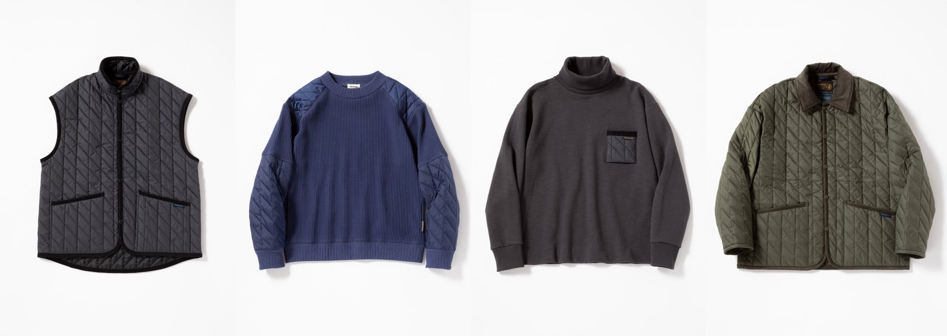 このコラボレーションは、50年以上の歴史ある英国と日本のファクトリーブランドが、互いのストロングポイントである素材や縫製技術にフォーカスして制作されました。両ブランドの代表的な素材を使用したジレ、ロングスリーブワッフル、アーマードセーター、ハイネックスウェット、ジャケットの4型をリリースいたします。