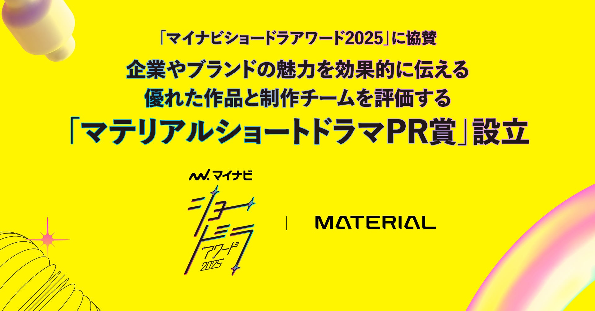 マテリアル、ショートドラマのコンペ「マイナビショードラアワード2025」に協賛。初の「マテリアルショートドラマPR賞」を設立し、取締役の関が審査員に就任