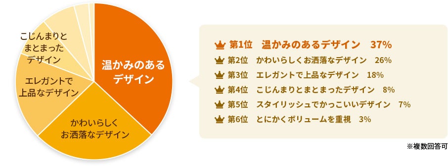 「温かみのあるデザイン」が最も多く、全体の37%となりました。2番目に多かった「かわいらしくお洒落なデザイン」とは9ポイントの差がありました。お母さんに「温かい気持ち」を伝えたいと考える方が多いようです。
