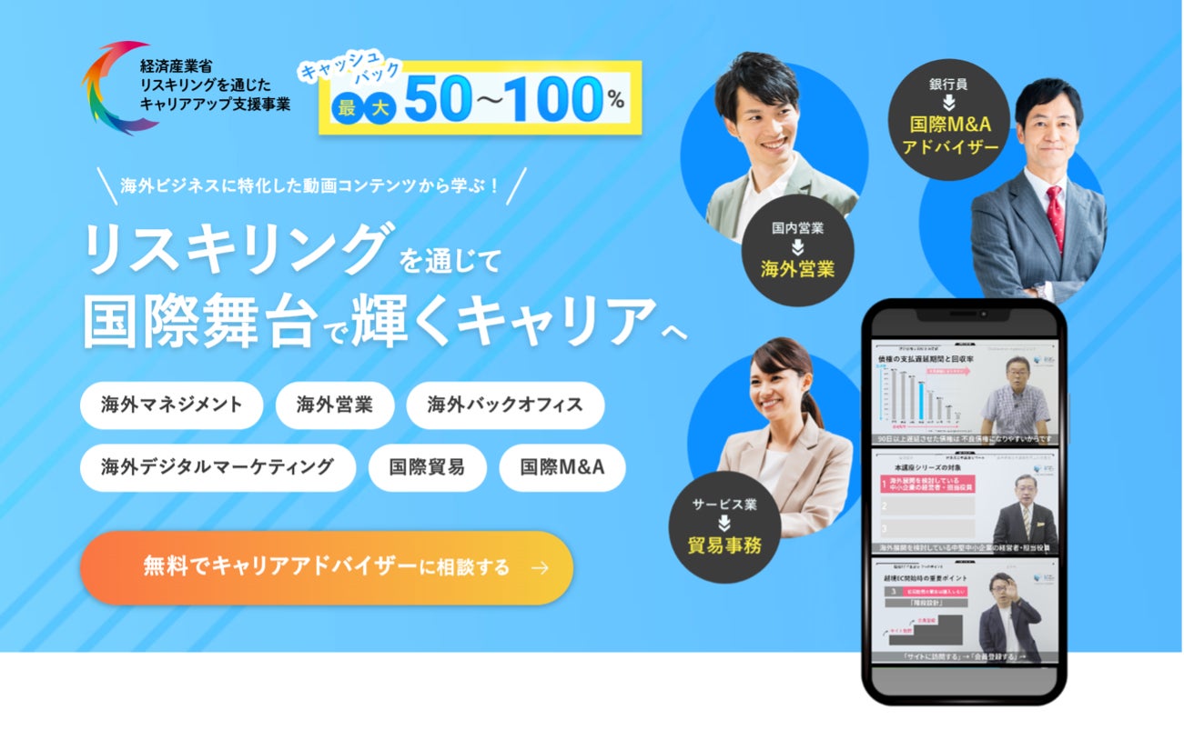 サイエスト株式会社(本社:東京都港区、代表取締役:北村 嘉章)は、グローバルビジネスにおいて即戦力となるスキルを身につけるためのリスキリング転職支援サービス「Global Skill Learning」を正式にリリースしました。本サービスは、個人が次世代のキャリアに適応し、自信を持って国際業務に挑むためのスキルを短期間で習得できるプログラムです。デジタルマーケティング、国際貿易、海外営業、M&Aなど、実践的なカリキュラムが揃い、さらに経済産業省のリスキリング支援プログラムに採択されたことで、受講者は受講料の最大100%キャッシュバックが受けられる特典も提供されています。