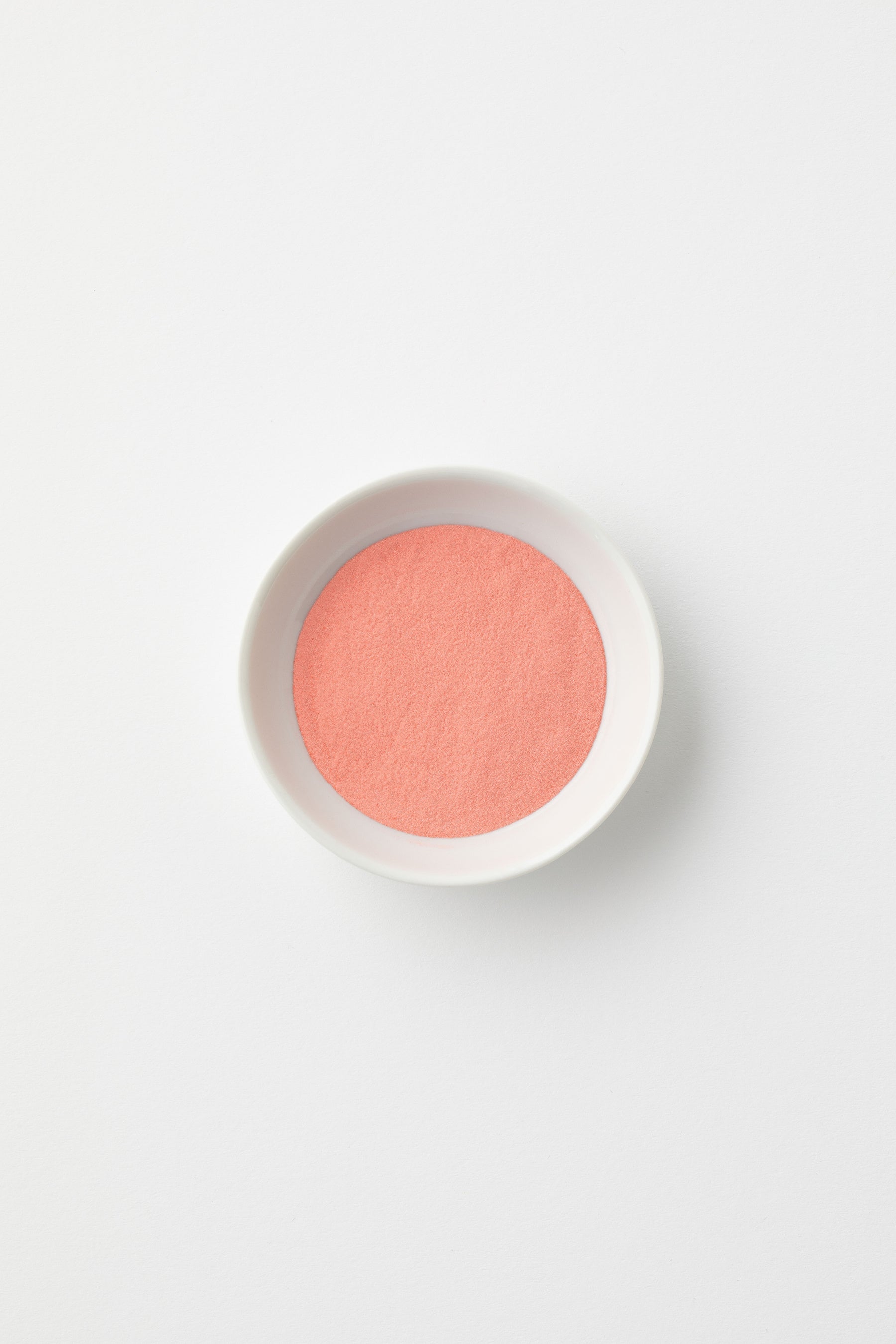 海の鮮やかな珊瑚を粉末にした、少々黄みのあるコーラルピンクに近い色合いです。黒髪に映えることから、髪飾りで古くから愛好されていました。