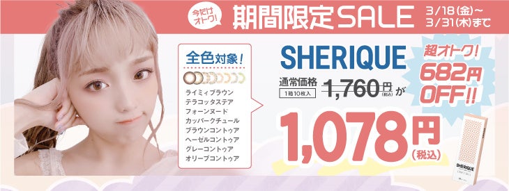 株式会社アイセイ(本社:大阪市東淀川区 代表:五島良平 以下、当社)は、2022年3月18日(金)よりカラーコンタクトブランド『SHERIQUE(シェリーク)』のセール(一部店舗を除く)を開催します。