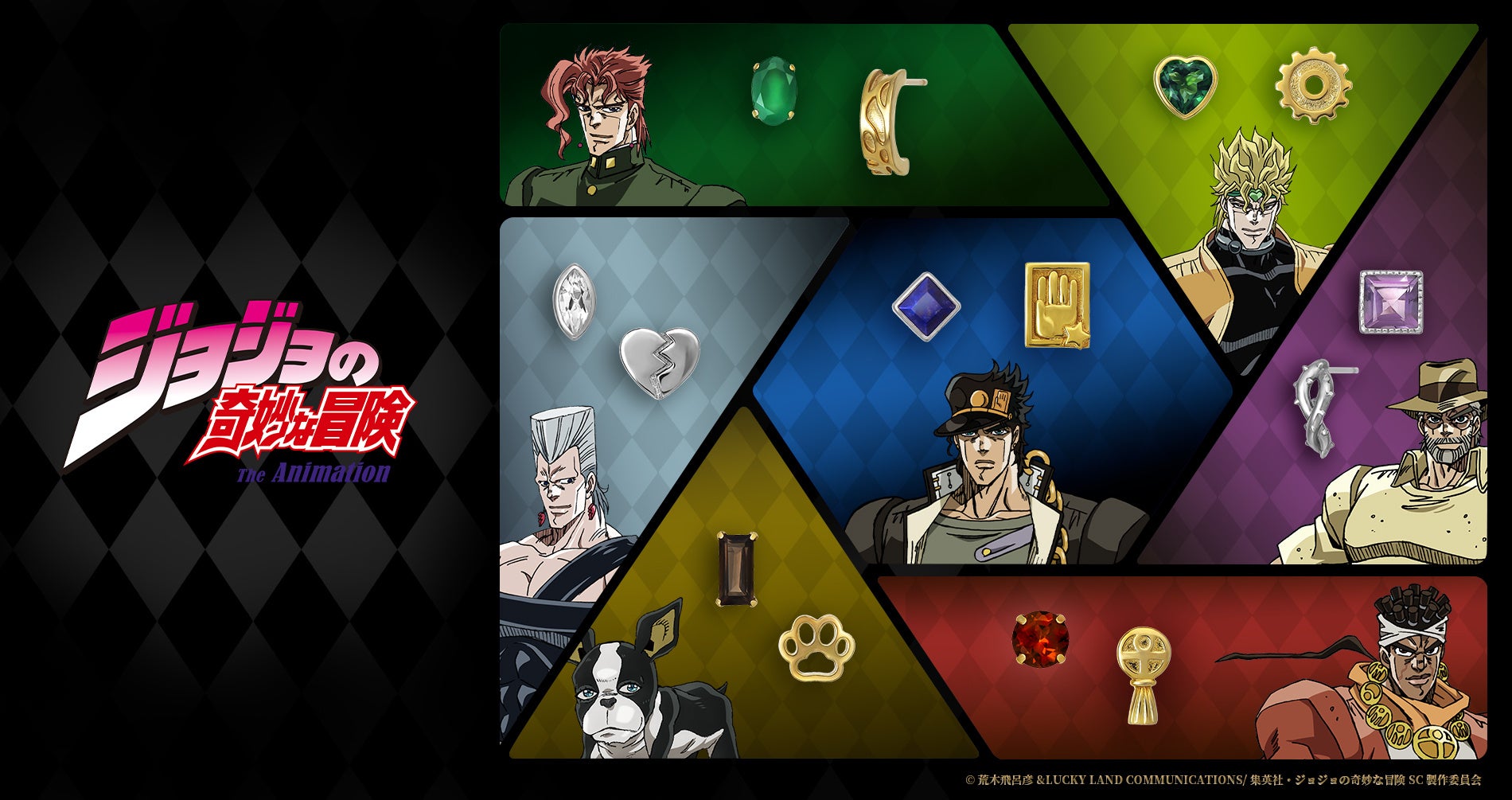 アニメ『ジョジョの奇妙な冒険 スターダストクルセイダース』よりキャラクターやスタンドをイメージしたカラーの天然石と象徴的なモチーフのピアス全7種が登場!