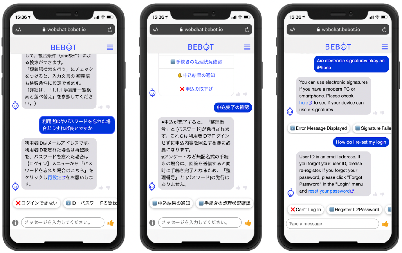 そこで電子申請システムに関する対応に加え、主要な行政手続きに関する情報を24時間365日提供できるAIチャットボット「Bebot」を、広島県電子申請システムに今年度より導入する運びとなりました。