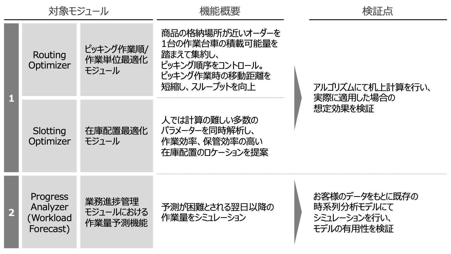 『GWES トライアル(PoC)サービス』の対象となるのは、以下3つのモジュールです。