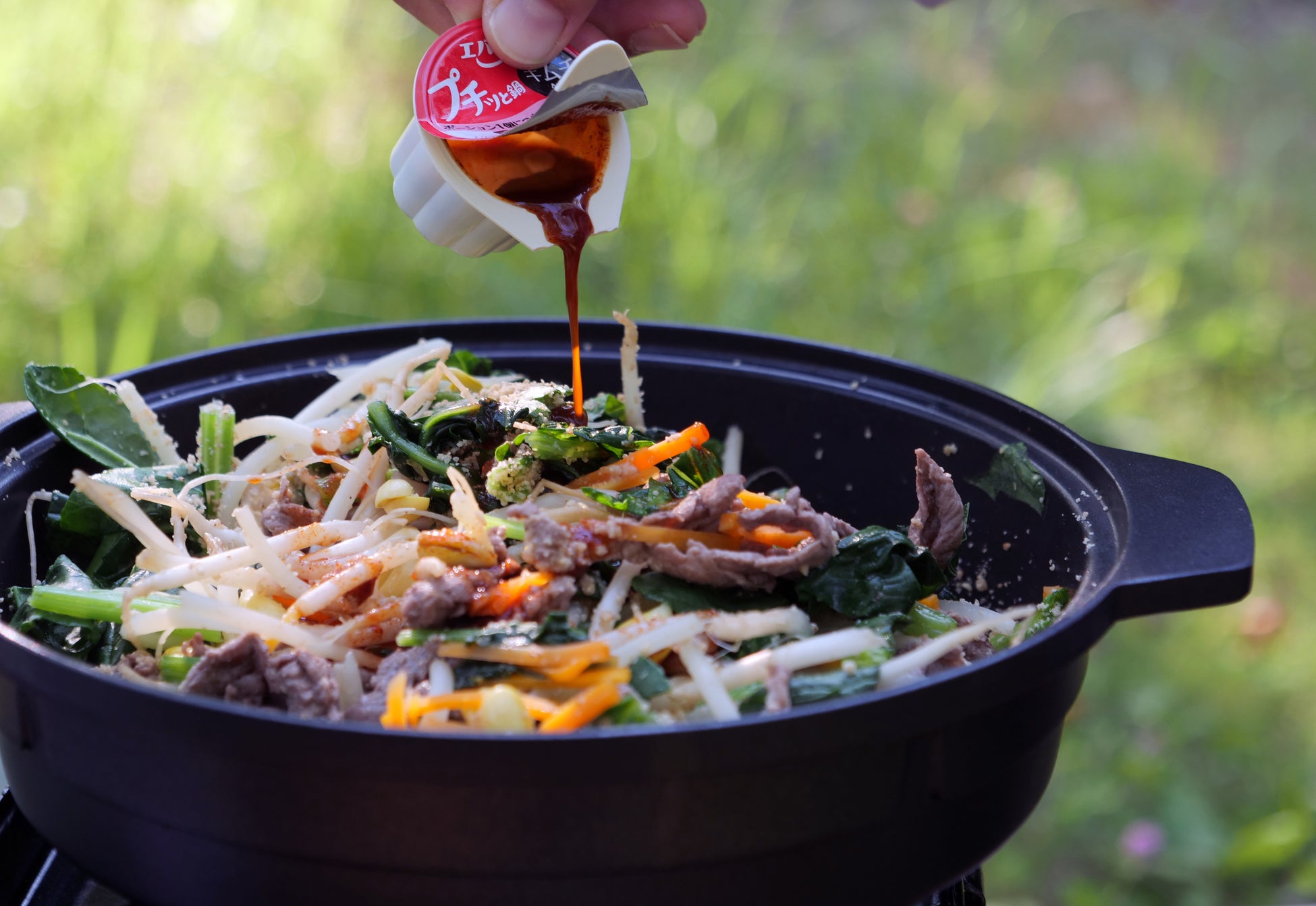 「プチッと鍋」は、1 人分ずつポーション容器に入った、うまみを濃縮した風味豊かな鍋の素です。軽く携行しやすく、計量する必要もないため、キャンプや登山などのアウトドアシーンにもぴったりです。