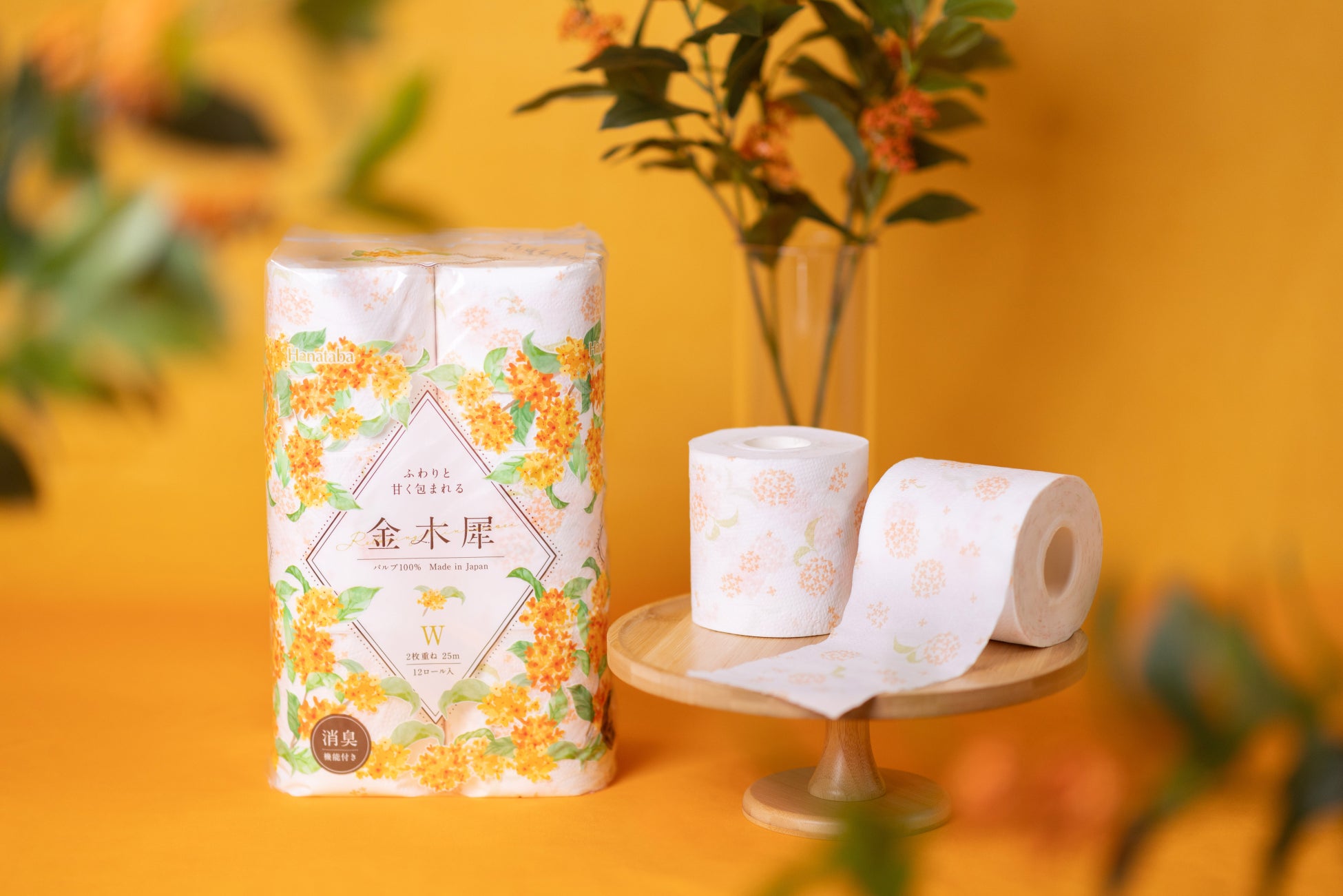 甘くてやさしい香りに癒される…大人気の金木犀の香りをトイレの中でも。「Hanataba金木犀 トイレットペーパー」新発売!