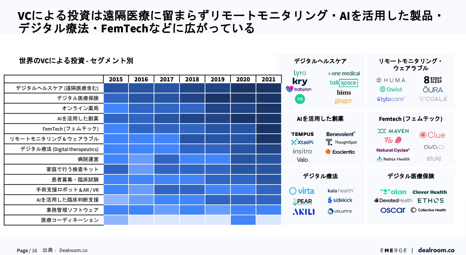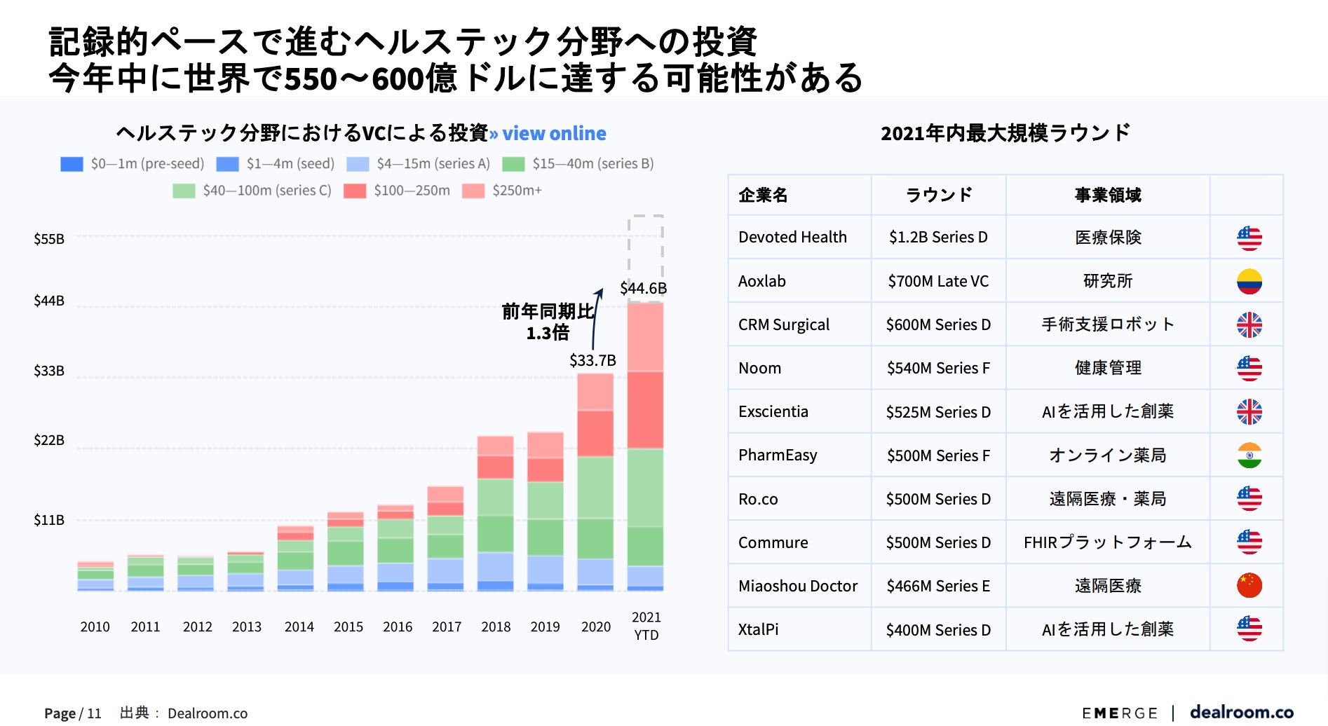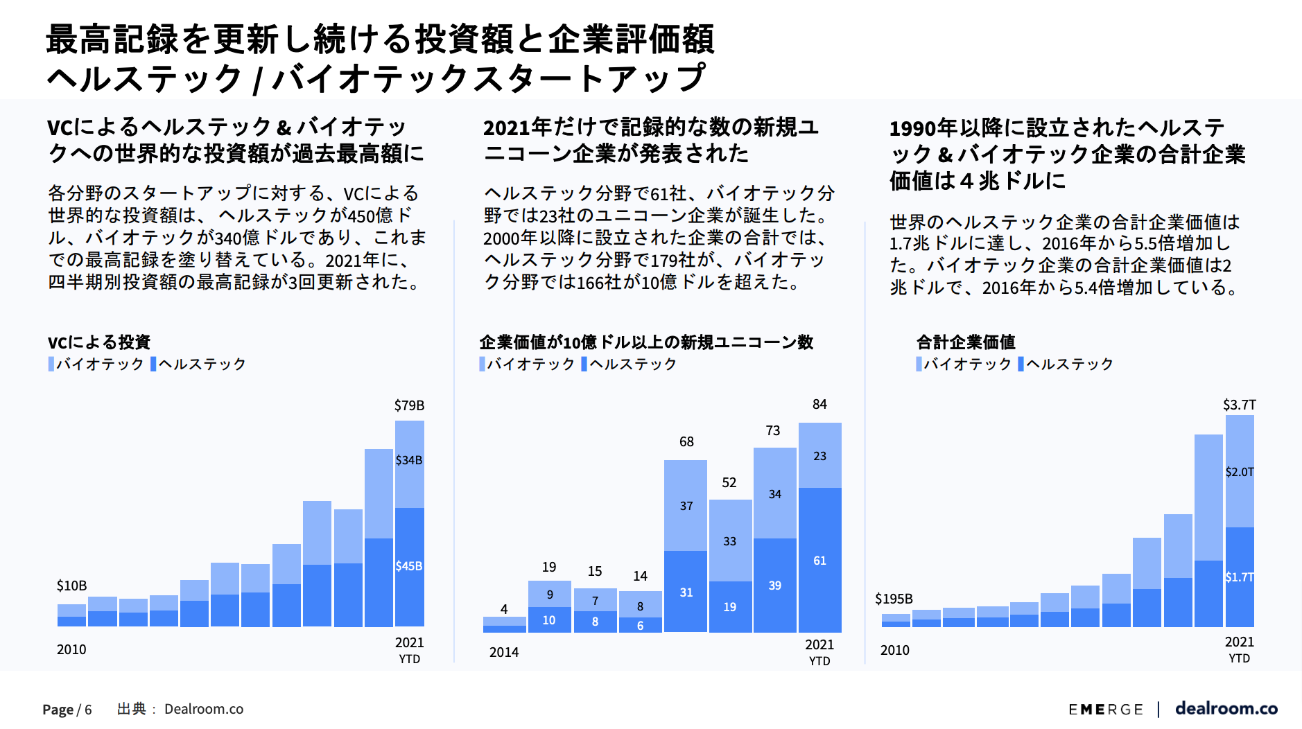 各分野のスタートアップに対するVCによる世界的な投資額は、2021年にこれまでの記録を塗り替えました。また、ヘルスケア業界ではいくつかの抜本的変化が起きており、市場参入するディスラプターにとって追い風となっています。