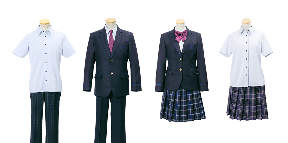 デザイン、機能性、価格の観点から検討を重ねました。特に、ネクタイとリボンは、地域の方々が本校の正面から東西に延びる通りに学校の発展を願って植えていただいたベニバナトチノキの花の色がもとになっています。