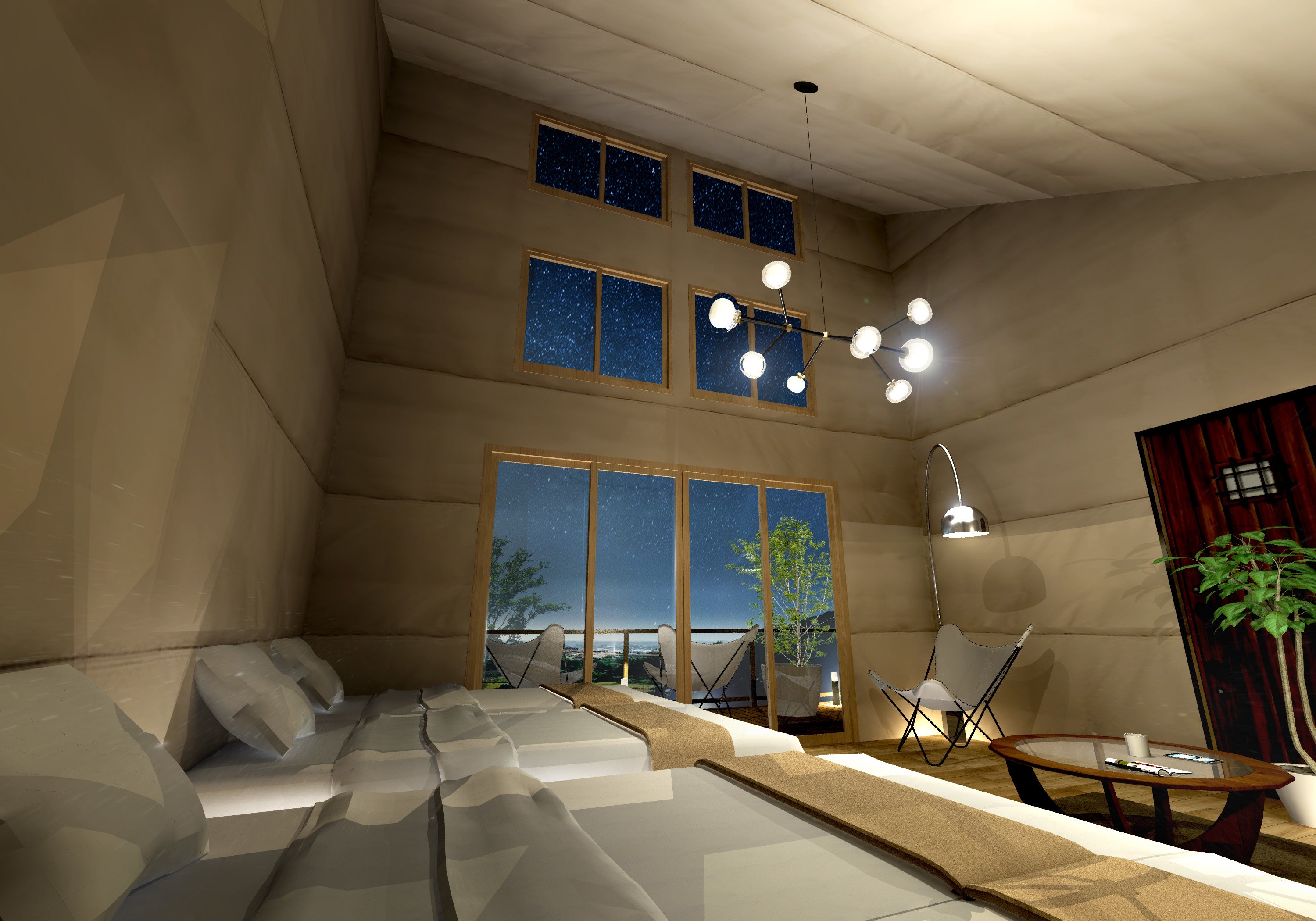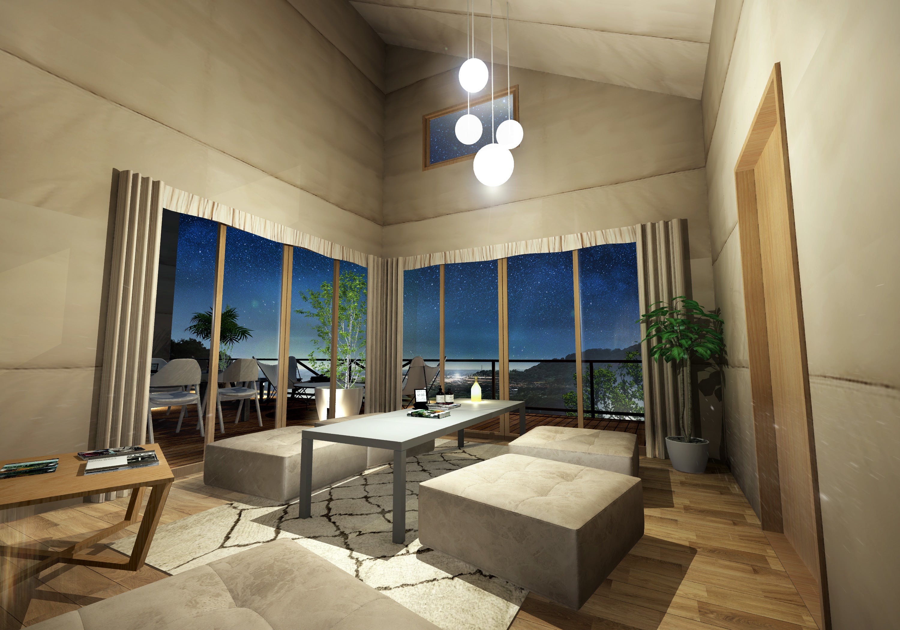 他のお客様と接触する機会を極力排除した施設作りを意識しております。お部屋は1棟貸切型で他のお部屋と十分な距離、間隔を空けて配置しており、完全プライベート空間で過ごして頂けるよう食事スペース・温泉風呂・トイレなど個別で設置しております。また、共有エリアのほとんどが半屋外仕様としておりますので、極めて接触頻度の低い施設作りを心掛けております。安心・安全な環境で思う存分グランピングをお楽しみください。