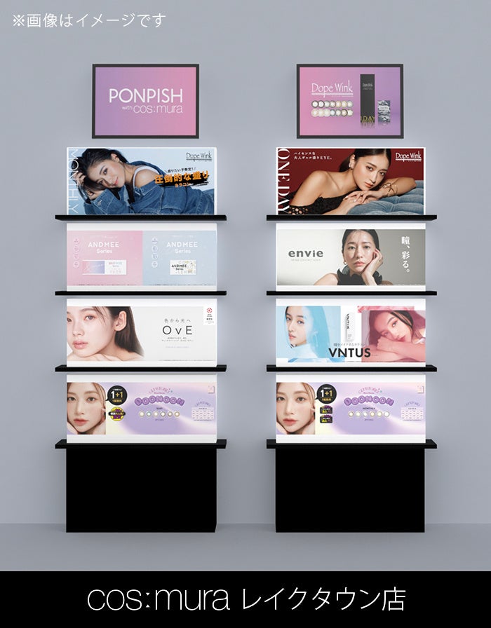 株式会社ANW(本社:東京都港区、代表取締役:清水 正/以下ANW)は、シェア買いEC「PONPISH[ポンピッシュ](以下PONPISH)」を通して、日本の大人気カラーコンタクトレンズブランドのみならず、韓国の大人気カラーコンタクトレンズブランドの販売を行ってきました。この度、韓国コスメ専門セレクトショップ「cos:mura(コスムラ)(以下cos:mura)」を全国に50店舗展開する株式会社L&K(本社:東京都千代⽥区、代表取締役:權 容守/以下L&K)とタッグを組み、2023年11月15日(水)にレイクタウン店にてカラーコンタクトレンズ売場の展開をしたことをお知らせ致します。