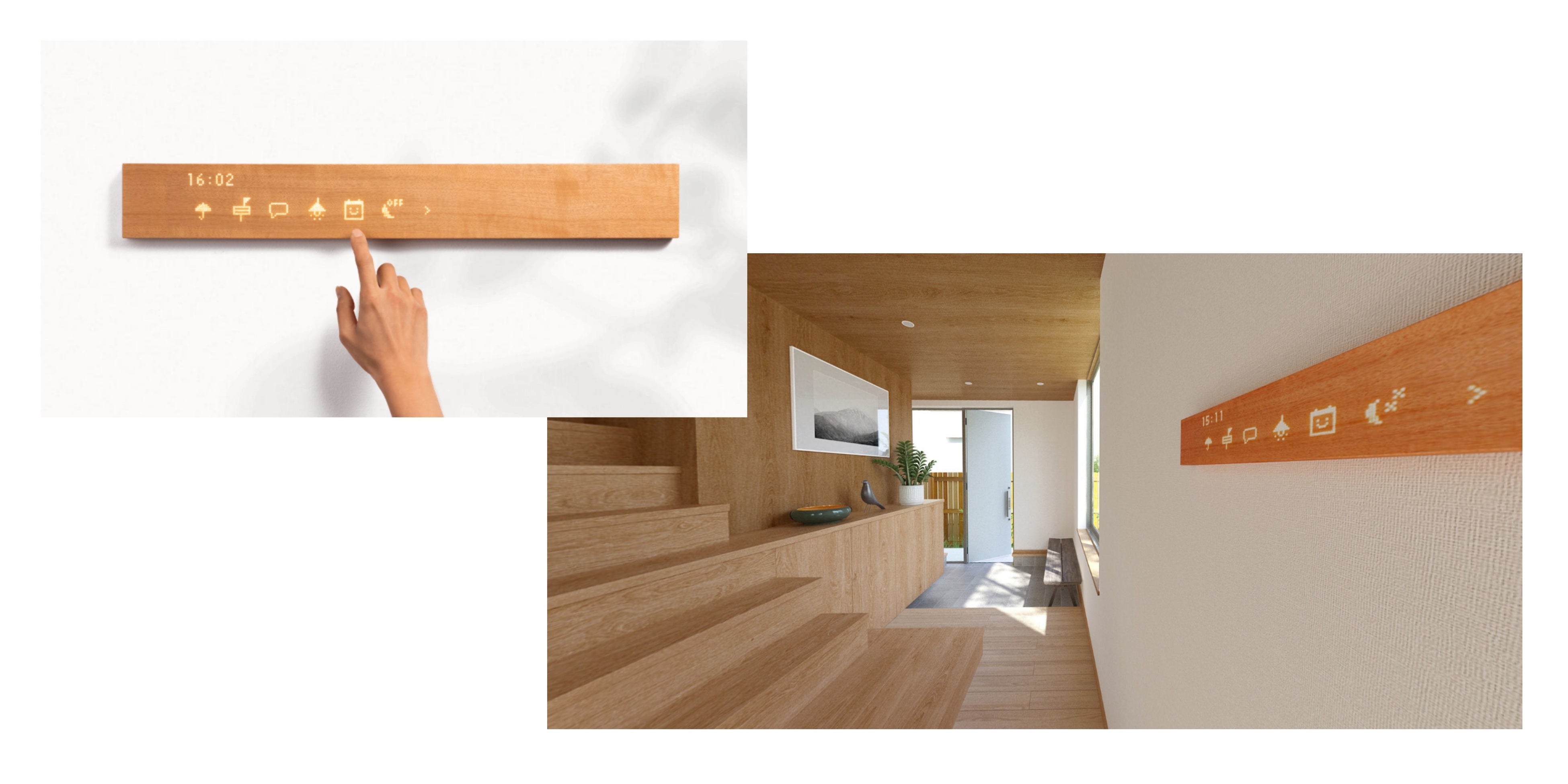 「muihaus.」に備えられた「muiボード」は、スマートホーム機器と同じく、リモコンとして照明やエアコン、音楽スピーカーなどをコントロールする他、インターネットとつながり天気やカレンダー情報の入手、ラジオ視聴ができます。また、二十四節気に合わせて季節の詩が届く機能、自然に起床や就寝を促す光源調整を行う機能を備えています。音や時刻の設定により、無理なくゆったりとした起床を促す目覚ましタイマーや、設定した就寝時間に向けて徐々に暗くなる照明機能を備える「muiボード」が、心身にストレスのない睡眠・起床環境を整えます。