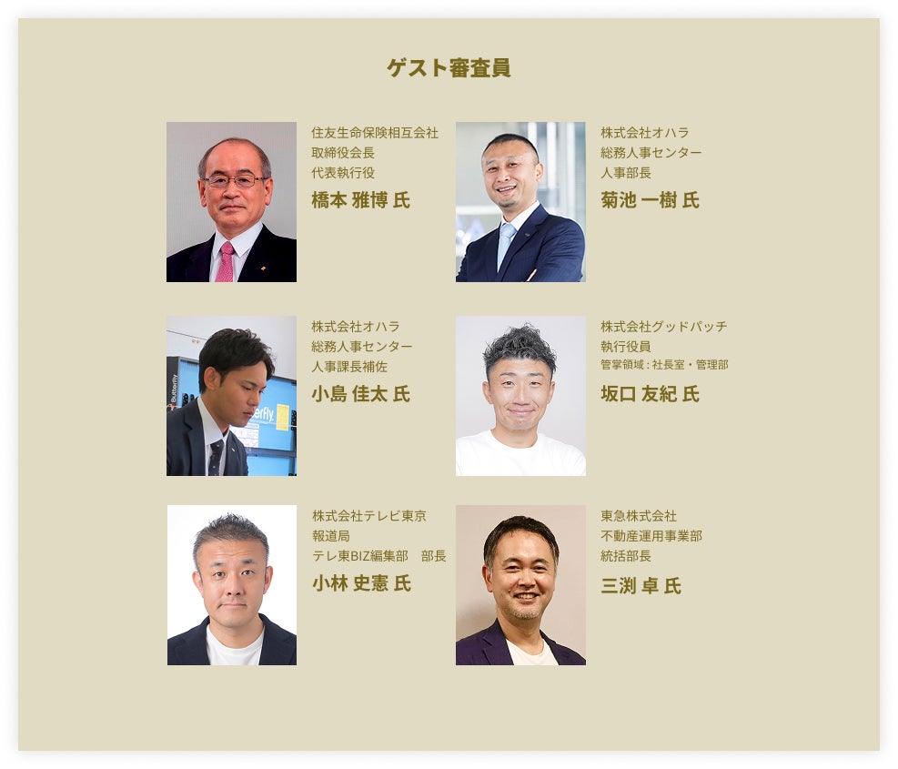 審査員(敬称略):住友生命保険相互会社 橋本様/株式会社オハラ菊池様,小島様/株式会社グッドパッチ 坂口様/株式会社テレビ東京 小林様 /東急株式会社 三渕様