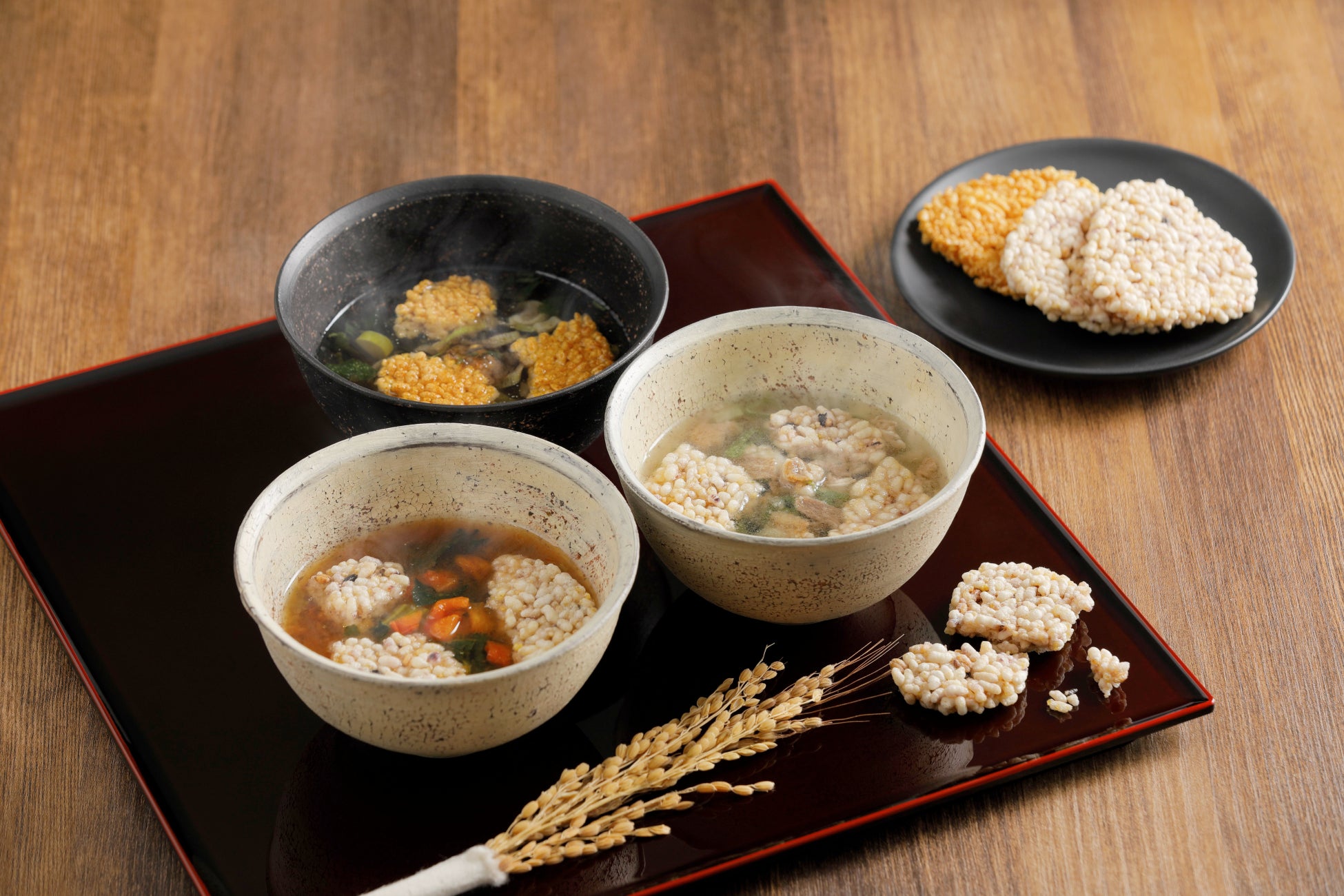「山むすび だしゆのこ」の“ゆのこ”とは、懐石の最後に出るおこげのこと。日本の文化「だし」をベースにしたフリーズドライスープと