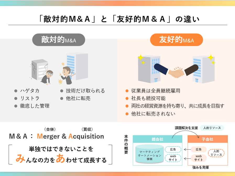 中堅・中小企業の継続・発展に資する友好的M&Aの仲介・助言業務