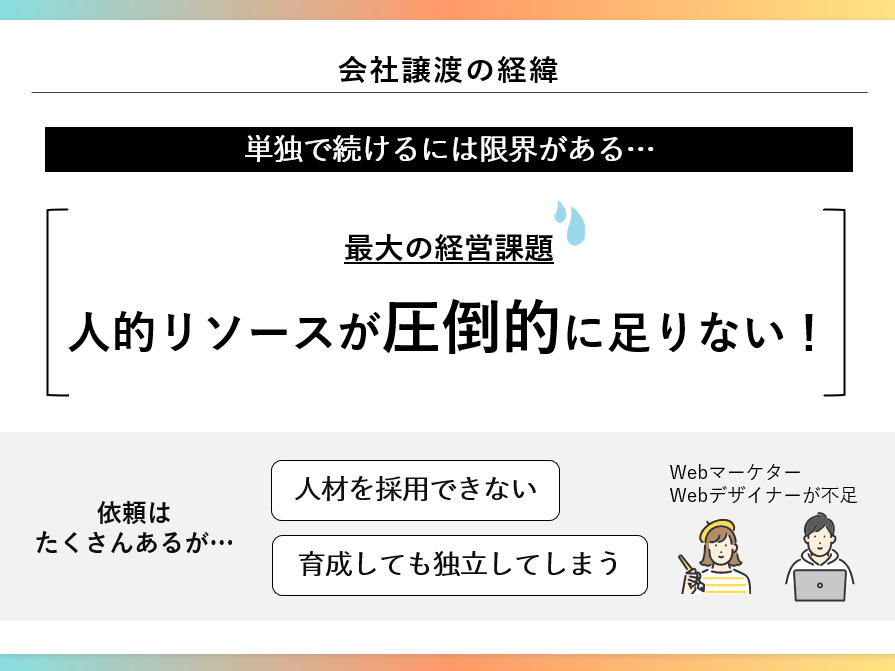 ・ 仕事の依頼は多いが人が足りない! ・M&A会社からの大量のダイレクトメール