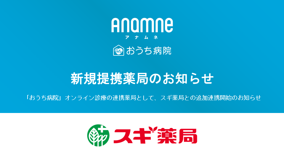 「おうち病院」スギ薬局と連携開始。オンライン診療の連携薬局を拡大。