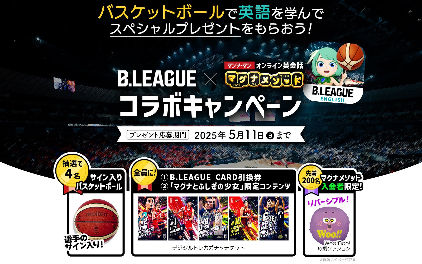 ミントフラッグ株式会社(本社:東京都渋谷区、代表:片山崇)は、2025年3月4日(火)より、公益社団法人ジャパン・プロフェッショナル・バスケットボールリーグ(東京都文京区、チェアマン:島田慎二 以下「B.LEAGUE」)とのコラボレーションによる「B.LEAGUE × マグナメソッド 英会話スクール無料体験キャンペーン」を開始します。
