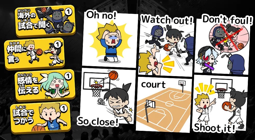 バスケットボールファンの子どもから大人まで、楽しみながら自然に英語を身につけられる英語学習コンテンツをアプリ内で公開し、英語を使って世界デビューをはたす人を応援します!