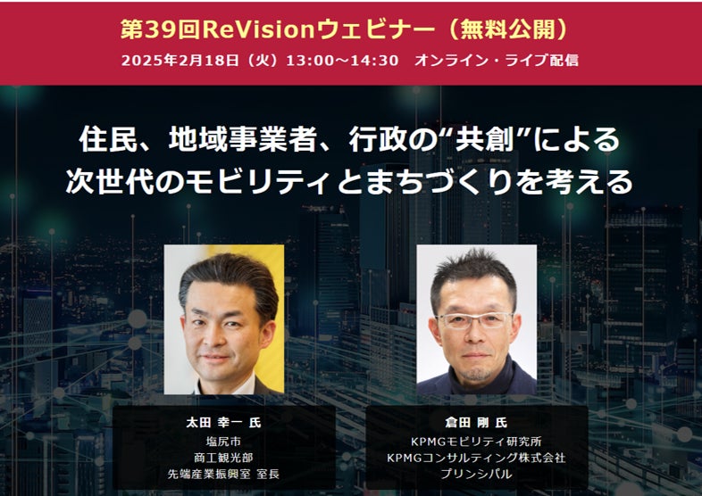 【無料WEBセミナー】 塩尻市、KPMGモビリティ研究所から講師を迎え、「住民、地域事業者、行政の“共創”による次世代のモビリティとまちづくり」をテーマにセミナー無料配信 ― 2月18日(火)