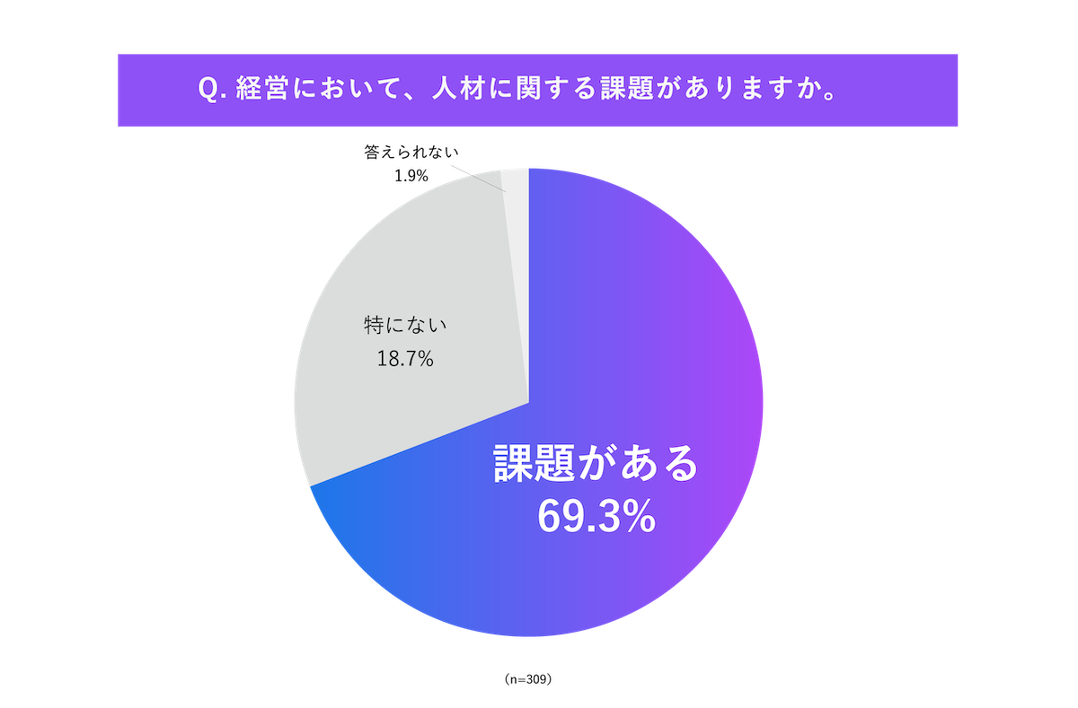人材に関する課題が「ある(69.3%)」と回答した企業は約7割にのぼり、「人材」は中小企業における主要な課題であることがわかります。