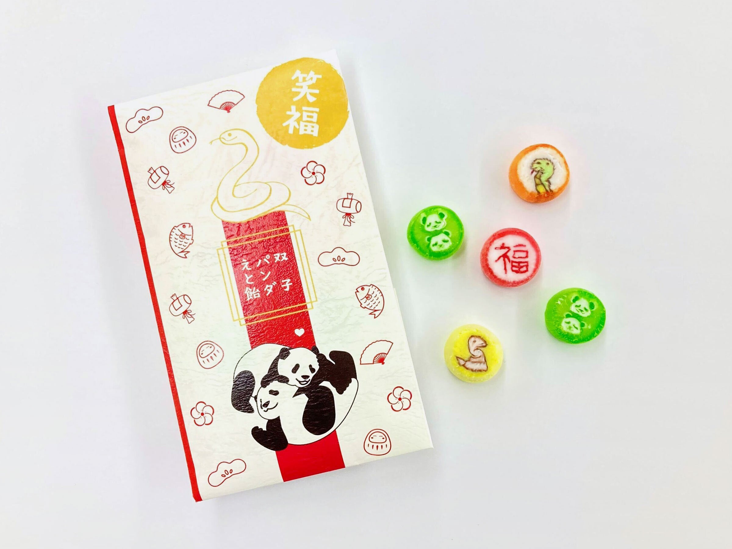 上野案内所でも人気の「双子パンダ飴」と、2025年の干支であるヘビのコンビネーションが楽しい、上野案内所限定、「双子パンダえと飴」が登場。ミニサイズなので、帰省のお土産や、年末年始のご挨拶にぴったりです。今年一年お世話になった方へのプチギフトやお年賀として渡せば、2025年もにっこり笑顔の一年になるはず。計5粒入