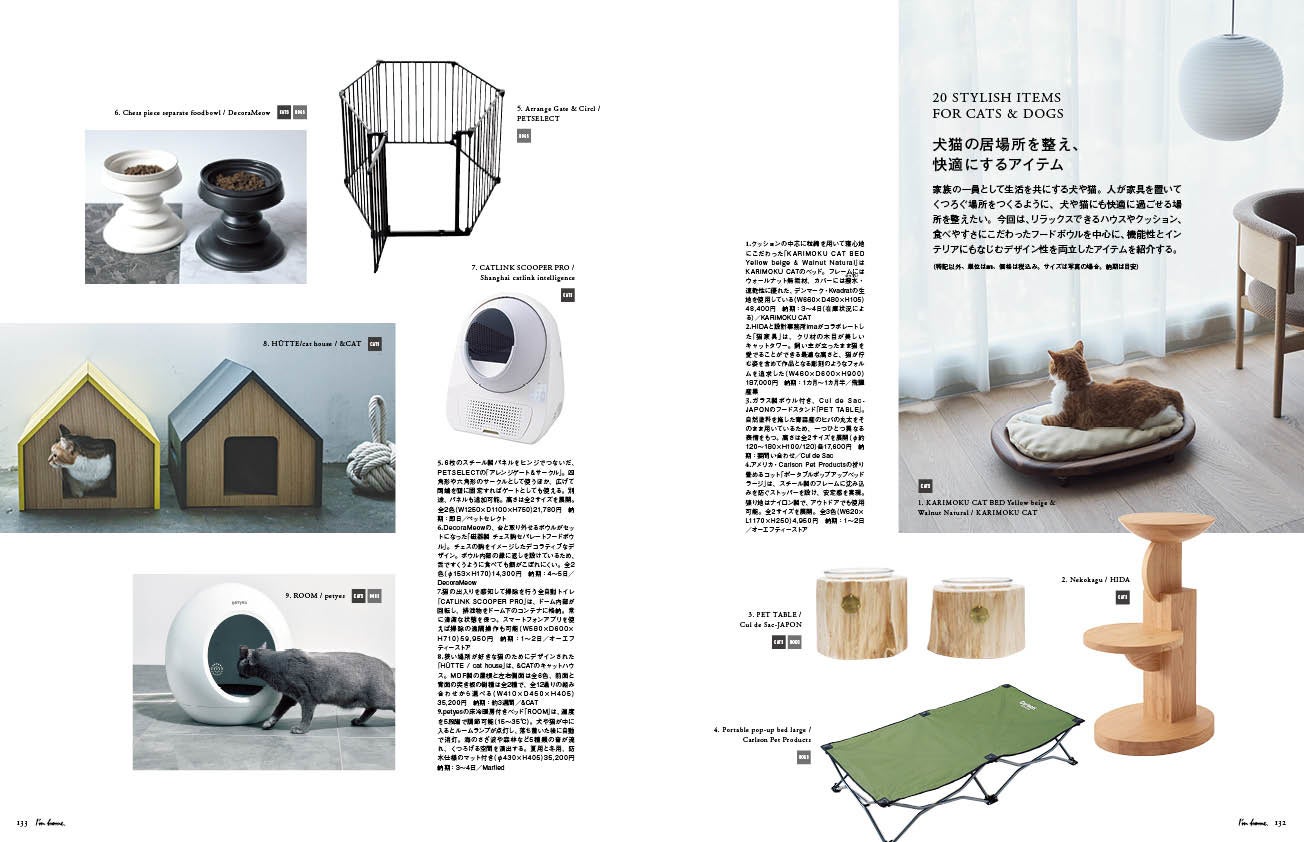 家族の一員として生活を共にする犬や猫。人が家具を置いてくつろぐ場所をつくるように、犬や猫にも快適に過ごせる場所を整えましょう。今回は、リラックスできるハウスやクッション、食べやすさにこだわったフードボウルを中心に、機能性とインテリアにもなじむデザイン性を両立したアイテムを紹介します。