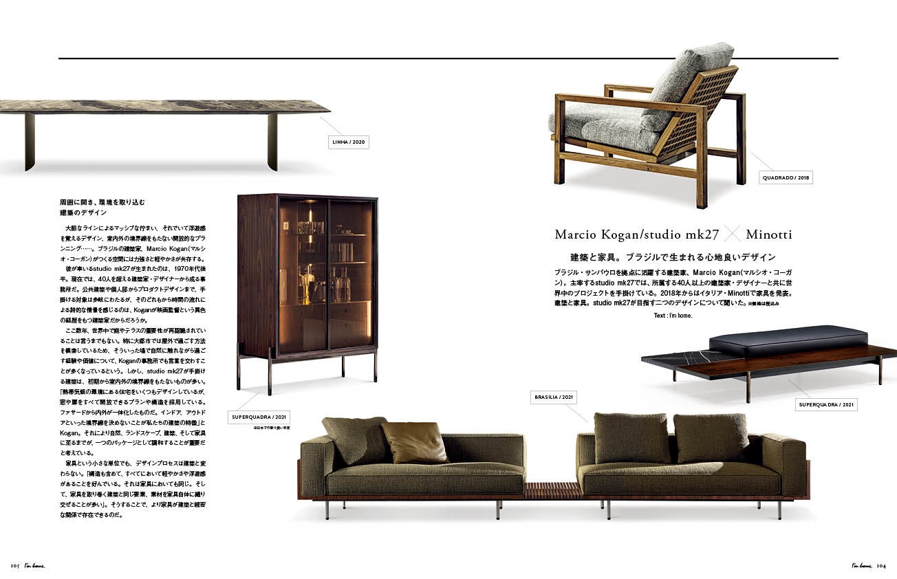 Marcio Kogan/studio mk27 Minotti 建築と家具。ブラジルで生まれる心地良いデザイン