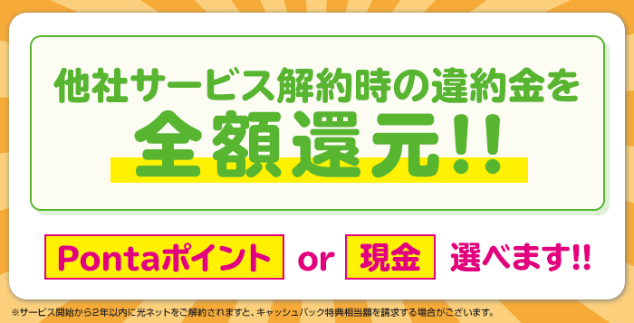 ※違約金(解約金)の還元は、Pontaポイントまたは現金キャッシュバックが選べます。