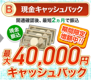 ※キャッシュバックは開通月の2ヶ月にお振込いたします。