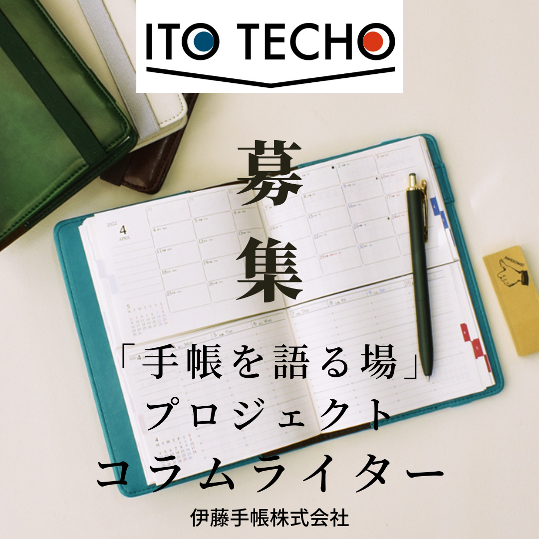 手帳製造・OEMを手がけて68年の伊藤手帳株式会社(本社名古屋市:代表取締役社長 伊藤 亮仁 以下当社)は、2022年4月27日より手帳を使う事で「仕事の質や効率が向上するアイデア」や「プライベートを充実させるアイデア」を伝える「手帳を語る場」プロジェクトを開始します。開始にあたり「手帳を語る場」へ寄稿してくれるコラムライターを募集します。