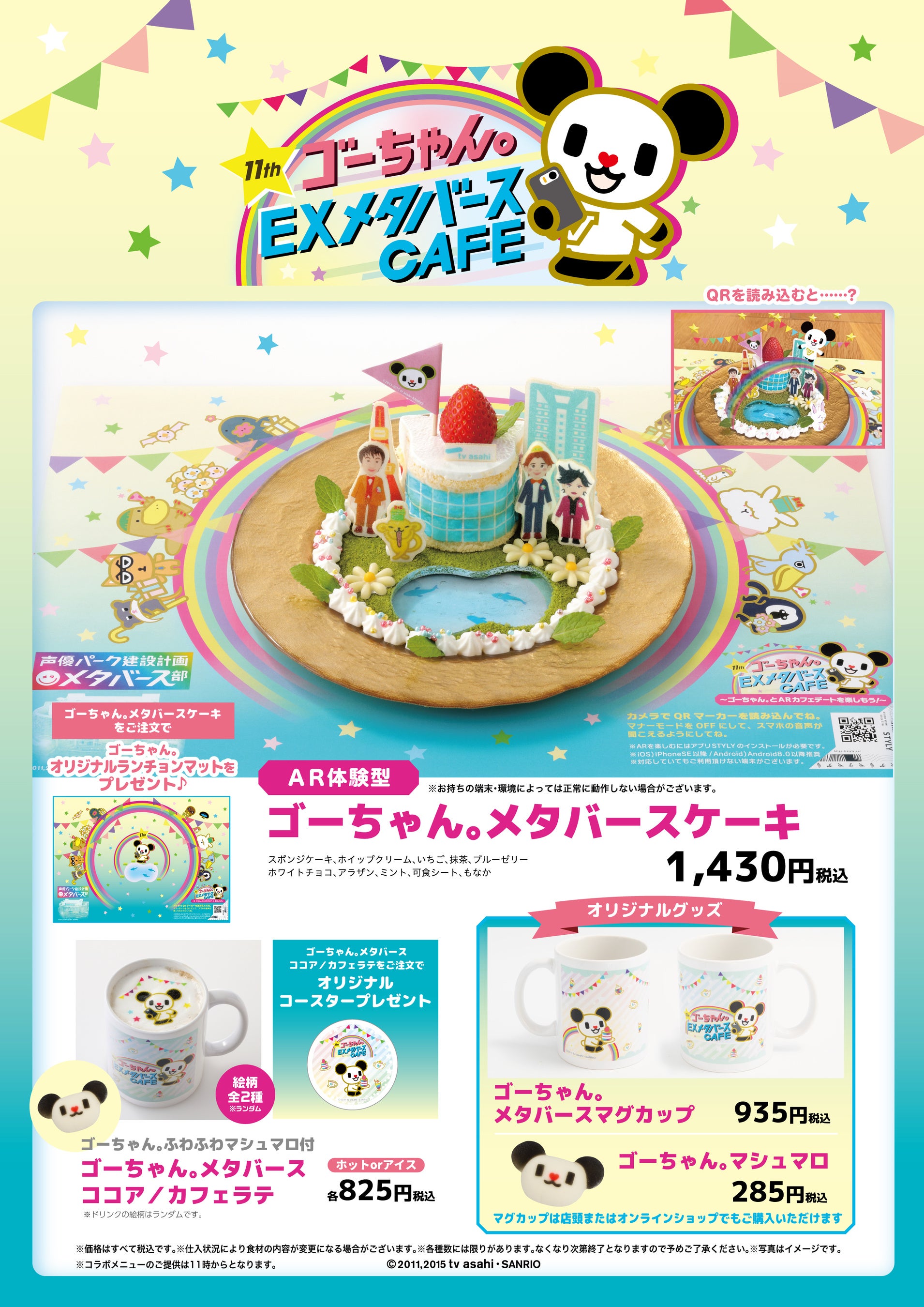 さらに!ゴーちゃん。のお誕生日を記念して、テレビ朝日の人気番組『声優パーク建設計画メタバース部』 (毎週日曜あさ10時~放送 ※一部地域を除く MC:関智一、ぺこぱ)とゴーちゃん。がコラボした体験型「ゴーちゃん。メタバースケーキ」が期間限定で新メニューに登場!
