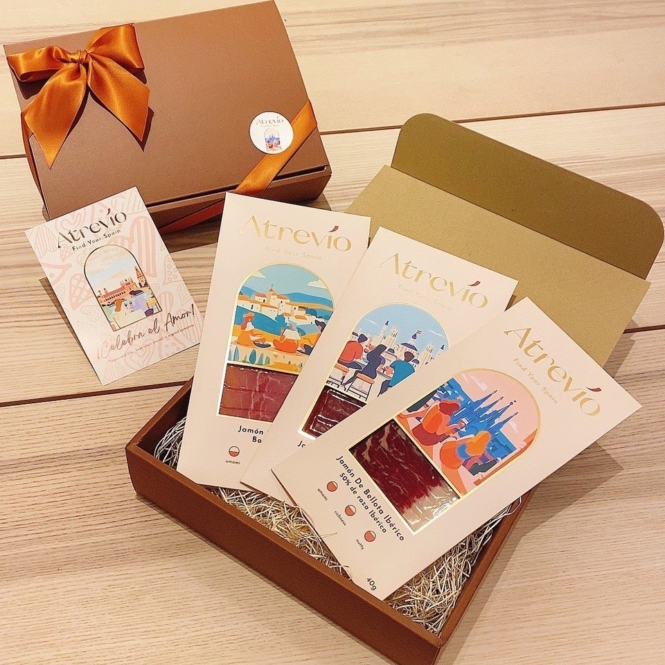 スペインを感じられるAtrevíoオリジナルパッケージのハモンと、オリジナルカードが付いた、バレンタインギフトセットを期間限定で店舗と公式オンラインショップで販売いたします。大切な方やご友人へのバレンタインのプレゼントや、自分へのご褒美にぴったりです。