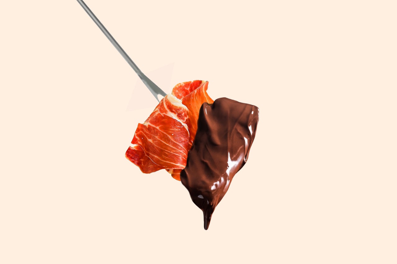 ハモンイベリコを温かいチョコレートで食べる