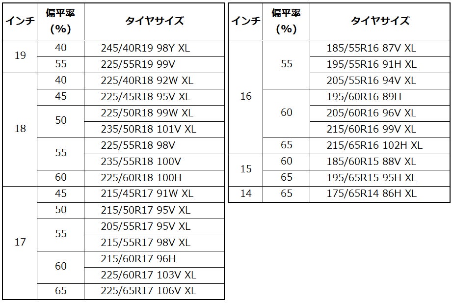 *5) 今回のサイズラインアップには、欧州タイヤラベリングの「燃費性能」で最高グレードの「A」を取得した215/65R16 102H XL が含まれます。